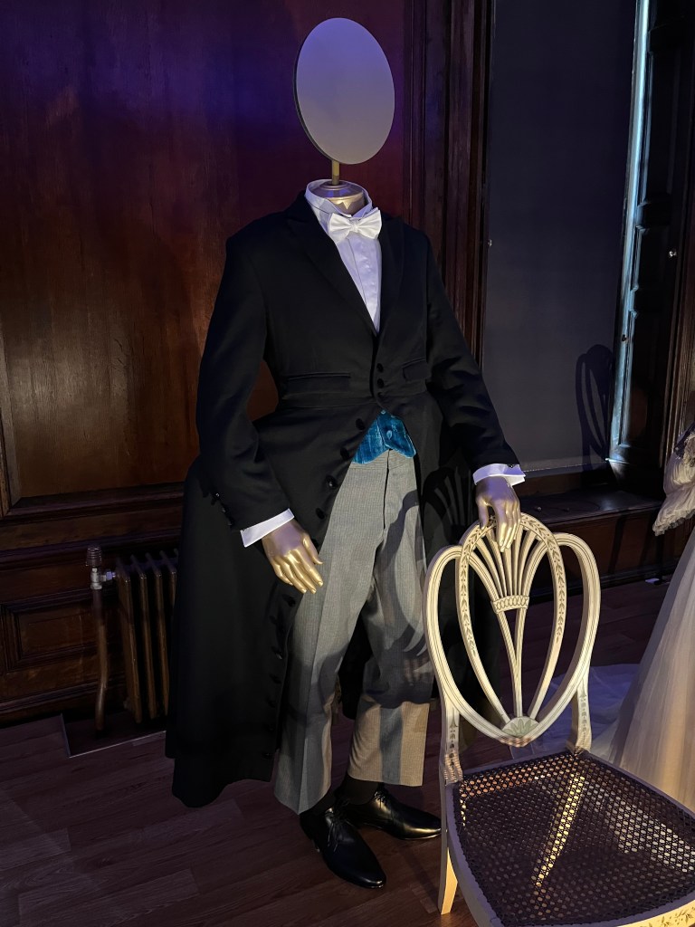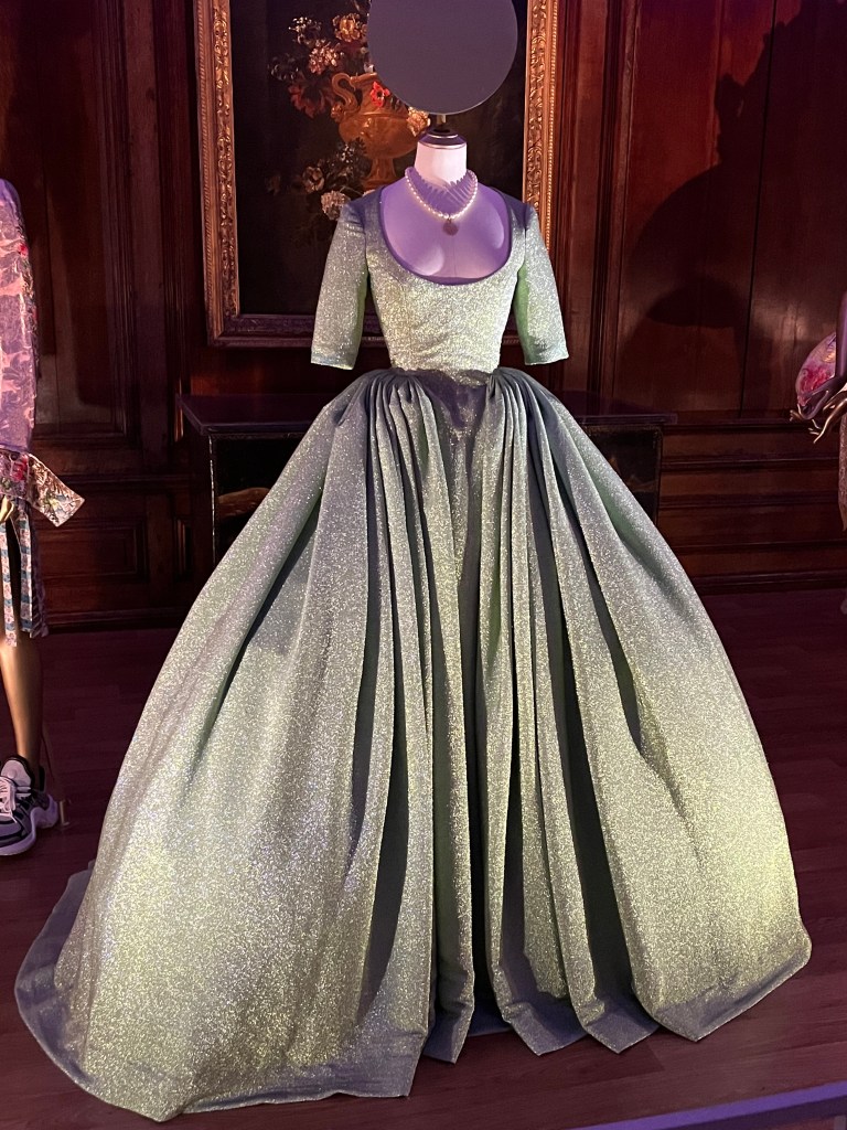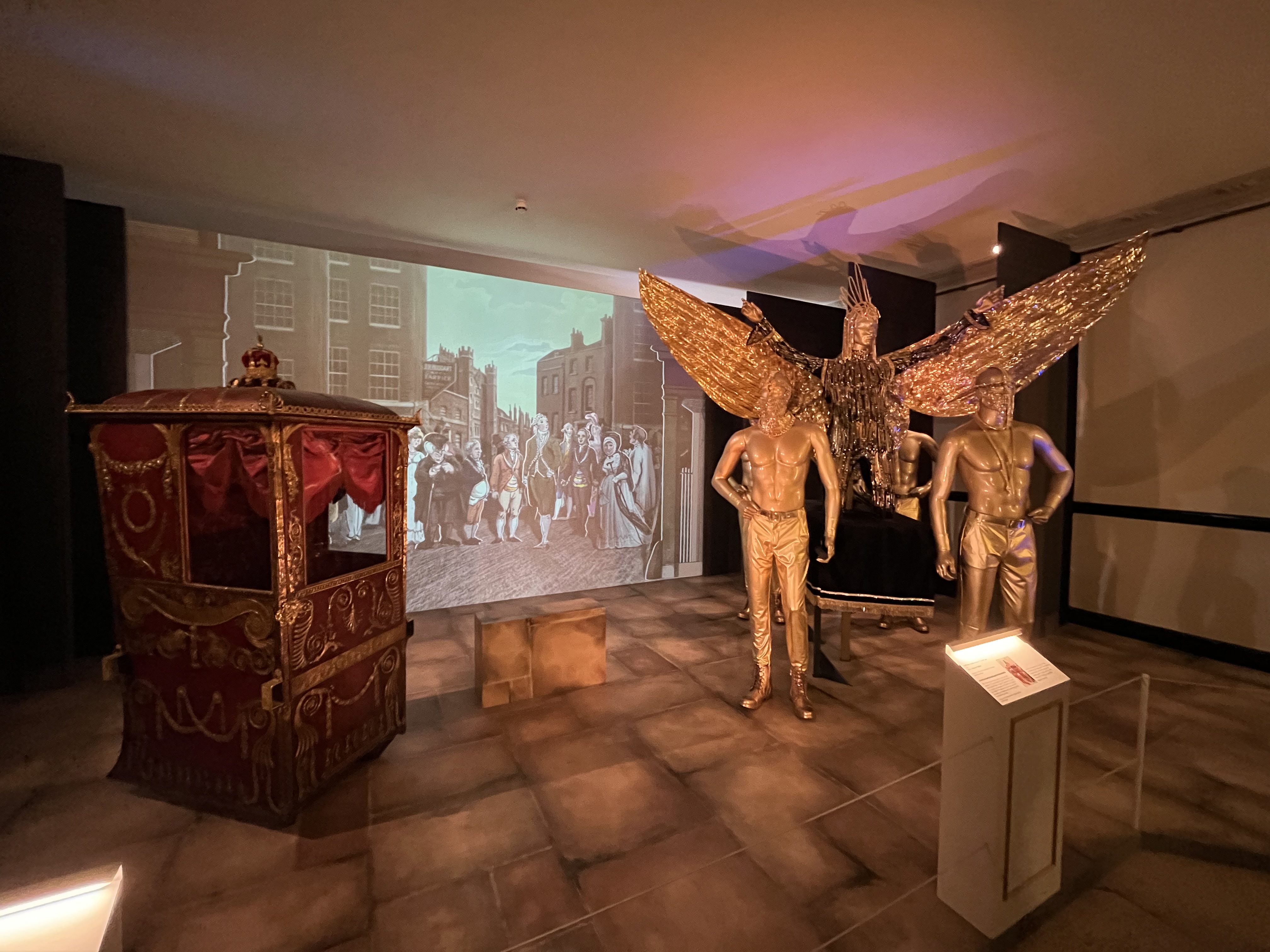The staircase also served the purpose of the Red Carpet for the court – it was your access point to the King’s court appearances, but also where you went to see and be seen before you entered the “crush”. And just like the red carpet, your attire could make or break you: there were no invitations to court, you were allowed in based on whether you looked the part (it was much more difficult to mimic the elite in a time period when a single gown could cost as much as an entire country estate’s yearly income and the average yearly income was about £20 for us mere mortals (guesstimate of £2,500 today)). So the utilization of the staircase to draw the parallel – along with the audio soundtrack – was a brilliant way of bringing this obscure aspect of Georgian court life home.