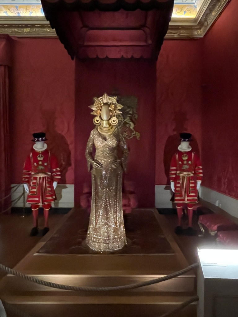 My first stop after checking in at my hotel in Blackfriars (more later), was Kensington Palace for Crown to Couture. The show’s premise is to lay out the parallels between the Georgian court and today’s red carpet culture, and it suggests some influence of the latter on the former. I’m not entirely sure about the direct influence idea other than the usual tendency of fashion designers to look to silhouettes past for inspiration and then utilise them in a contemporary design, but the concept was intriguing.