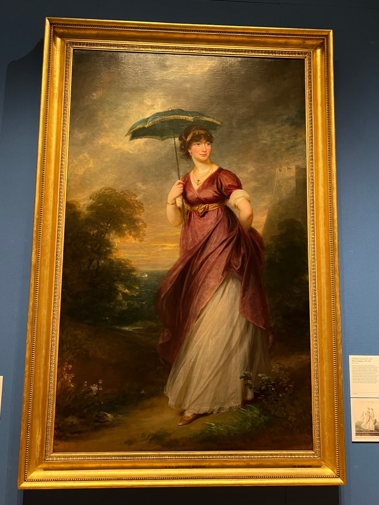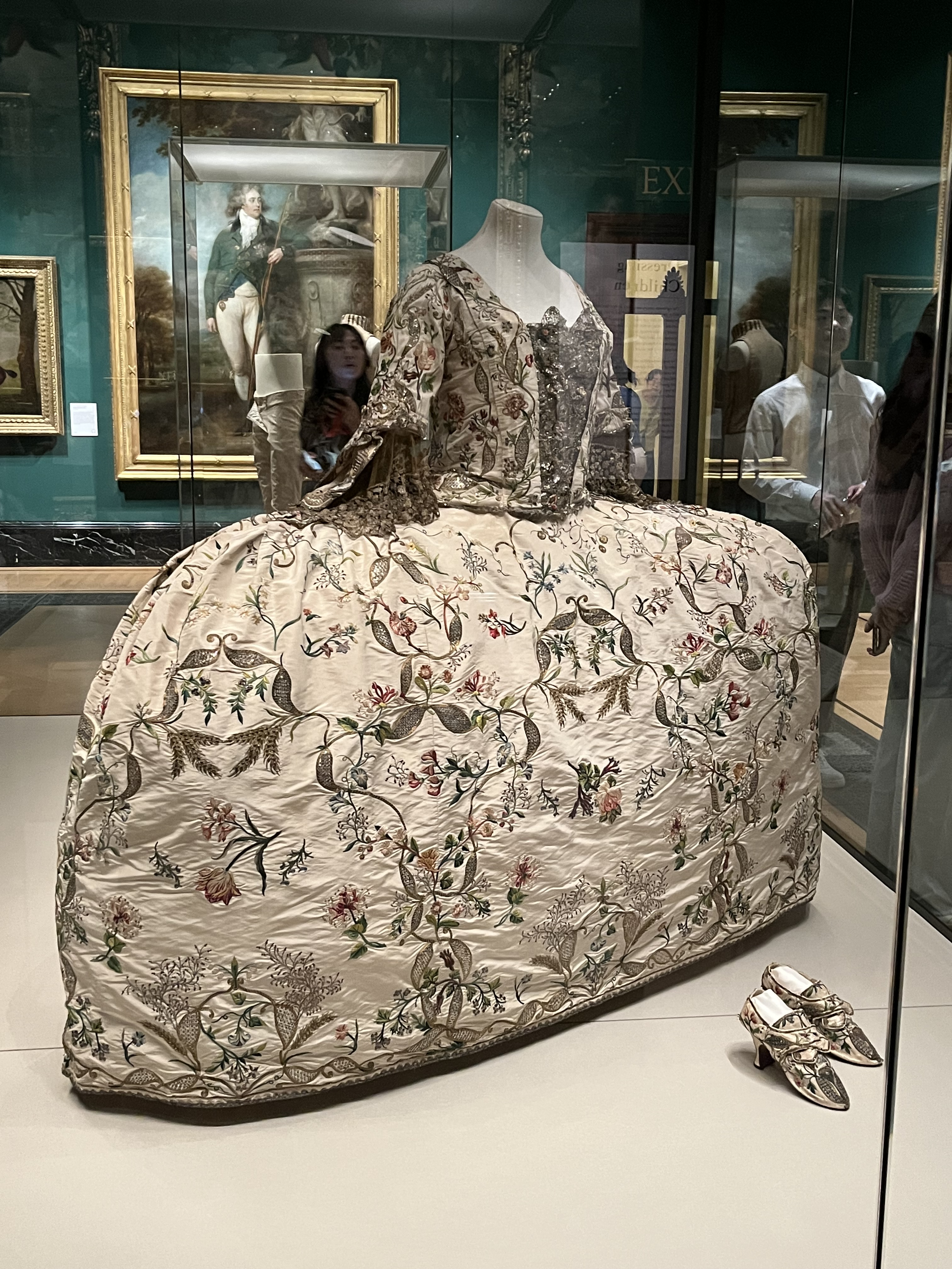 I was NOT disappointed. It is a glorious mix of paintings, fashion plates, caricatures, educational illustrations, sketches, and surviving objects to delve deeply into the dress and fashion culture of the Georgian period, predominantly of the Royal family and elite – but also examining the dress of the “average” person as well (though of course, almost none of that will survive). The catalogue is extremely thorough and the main effect of the show was to make me want to do an immediate close read when I get home (so glad I bought it ahead of the opening – it is HUGE and heavy, and that extra weight in my suitcase would have made me weep in all those Tube stations with no lifts).